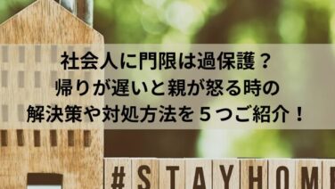 社会人に門限は過保護?なのかを社会人側(子供)と親側の気持ちをリサーチしました。社会人で門限は過保護だと思っている実家暮らしの社会人へ、解決策や対処方法方法5つご紹介します。帰りが遅いと親が怒ることで悩んでいる社会人の解決策が見つかれば幸いです。